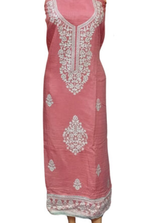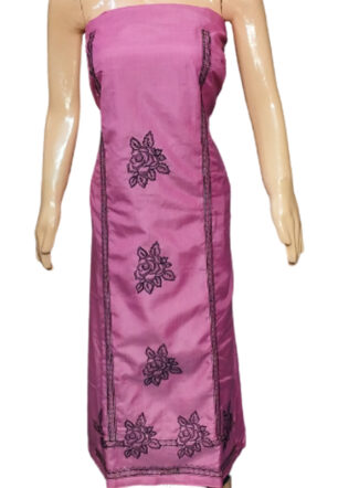Lakoji Fabric with Thread embroidery work Suit Material (Pink Color)