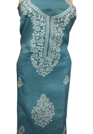 American Silk Suit Material with Organza Dupatta (Blue Color)