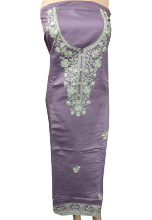 Lakoji Fabric with Thread embroidery work Suit Material (Purple Color)