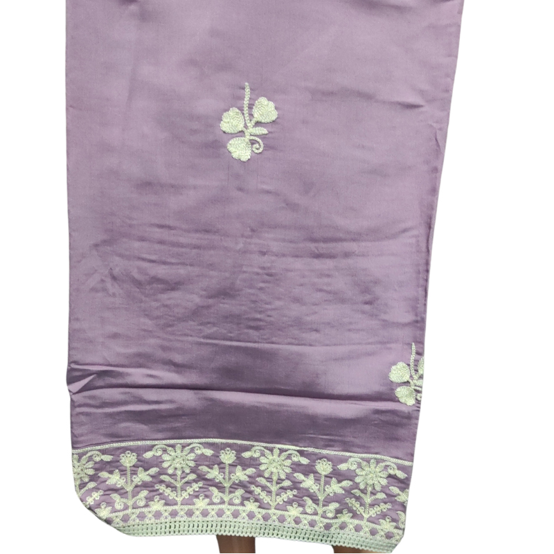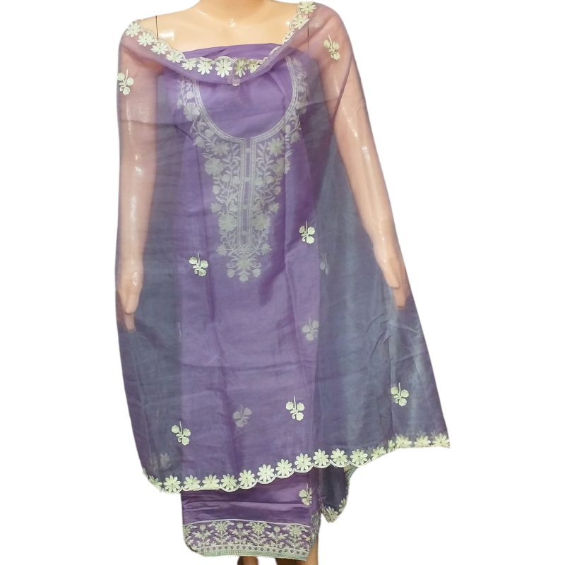 Top Fabric: American Silk kurta Heavy embroidered on neck and buta work (Length: 2.26-2.50) Bottom Fabric : Polyester+ Bottom (Length: 2.25 Meters) Dupatta Fabric : Organza Dupatta with embroidered floral border and buta (2.25 Meters) Lining Fabric: No Lining Type : Un Stitched Pattern: Embroidered Net Quantity (N) : Single