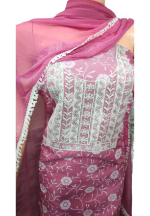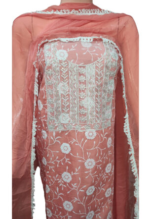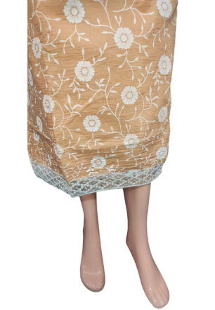 Top Fabric: Crafted from premium Poly Silk Fabric for a luxurious look. Bottom Fabric: Comes with a comfortable premium Poly Silk bottom (kurtri and bottom same fabric). Dupatta: Accompanied by a matching organza dupatta to complete the ensemble. with cutwork embroidered broad border. Pattern: embroidery Designer Suit Type: Unstitched Net Quantity (N) : Single