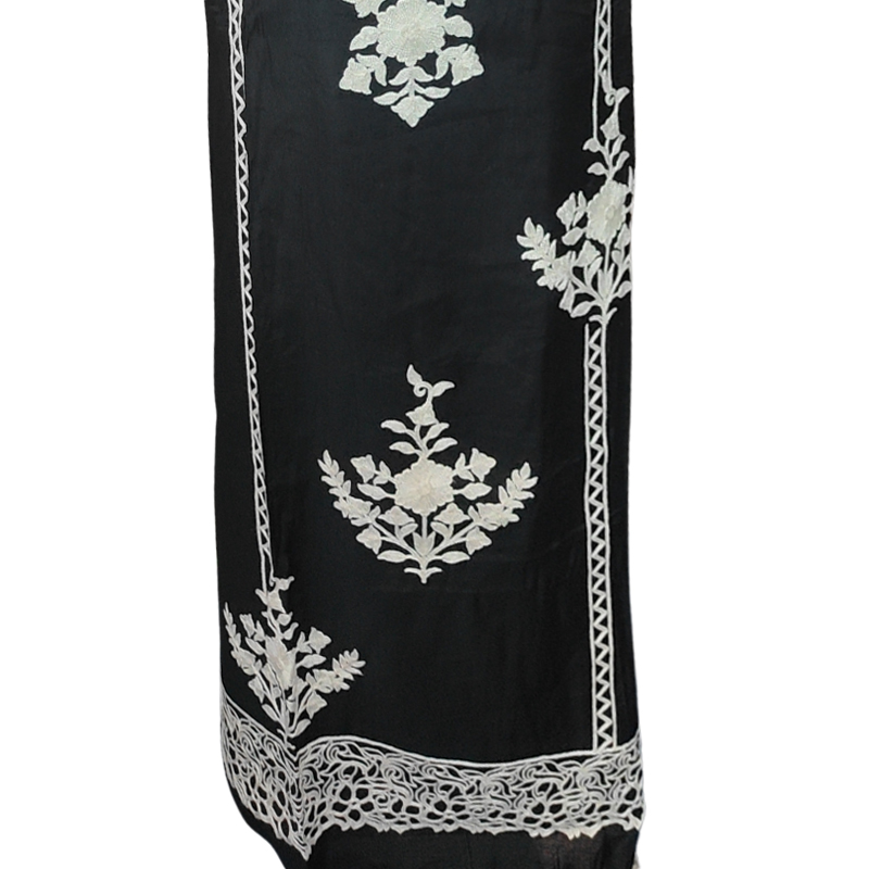 Black Designer Suit Embellished with intricate floral thread work, offering a sophisticated and classy look.